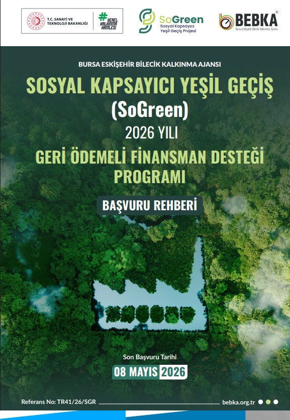 Sosyal Kapsayıcı Yeşil Geçiş (SoGreen) Programı, TR41 Bölgesi’nde faaliyet gösteren imalatçı KOBİ’lerin çevresel sürdürülebilirlik ve yeşil dönüşüm yatırımlarını desteklemek amacıyla oluşturulmuştur. Program kapsamında işletmelerin enerji verimliliği, kaynak verimliliği, karbon emisyonlarının azaltılması ve çevre dostu üretim süreçlerine geçişine yönelik yatırımları finansman desteği ile desteklenmektedir. Program, 6 ay geri ödemesiz ve toplamda 24 ay taksitli olmak üzere 30 ay vadeli, faizsiz finansman imkânı sunmaktadır. Ayrıca kadınlar, gençler ve kırılgan grupların istihdamını artıran projelere öncelik verilmektedir. Projelerin Avrupa Birliği Yeşil Taksonomisi ile uyumlu olması beklenmektedir.