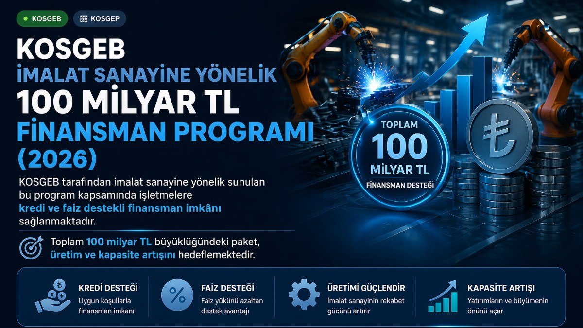 KOSGEB ve Sanayi ve Teknoloji Bakanlığı koordinasyonunda yürütülen bu finansman programı, imalat sektöründe faaliyet gösteren işletmelerin yatırım ve işletme ihtiyaçlarını karşılamayı amaçlamaktadır. Program kapsamında işletmelere doğrudan hibe verilmemekte, kredi ve faiz destek mekanizmaları üzerinden finansman sağlanmaktadır. Toplam 100 milyar TL büyüklüğündeki bu destek paketi; üretim kapasitesinin artırılması, teknolojik dönüşümün desteklenmesi ve istihdamın güçlendirilmesi hedefleri doğrultusunda uygulanmaktadır. İşletmeler, ilgili bankalar ve kurumlar aracılığıyla finansmana erişim sağlayabilmekte ve uygun koşullarda kredi kullanabilmektedir.
