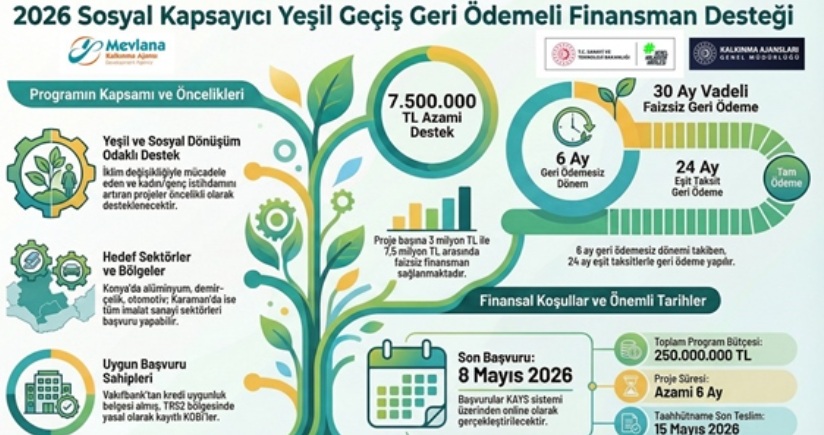 Konya ve Karaman’daki KOBİ’lerin yeşil dönüşüm ve sürdürülebilir üretim yatırımlarını destekleyen faizsiz geri ödemeli finansman programıdır.